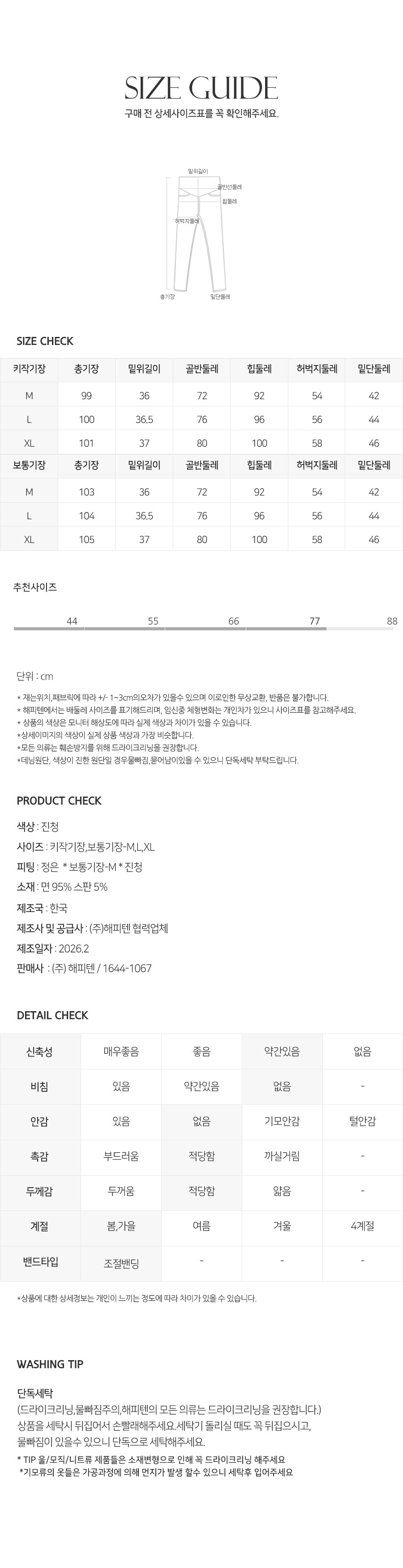 상세페이지의 세탁법을 준수하지 않아 생기는 문제에 대해서는 해피텐이 책임지지 않습니다.