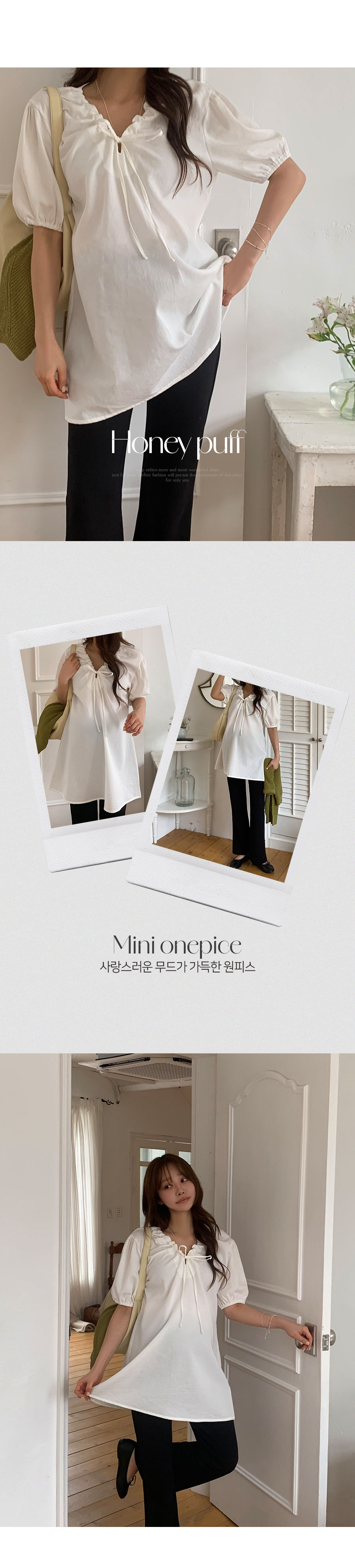 넥라인 스트랩 디테일로 사랑스러운 무드가 가득한 원피스에요 A라인으로 떨어지는 핏으로 조임없이 편하게 착용가능해요