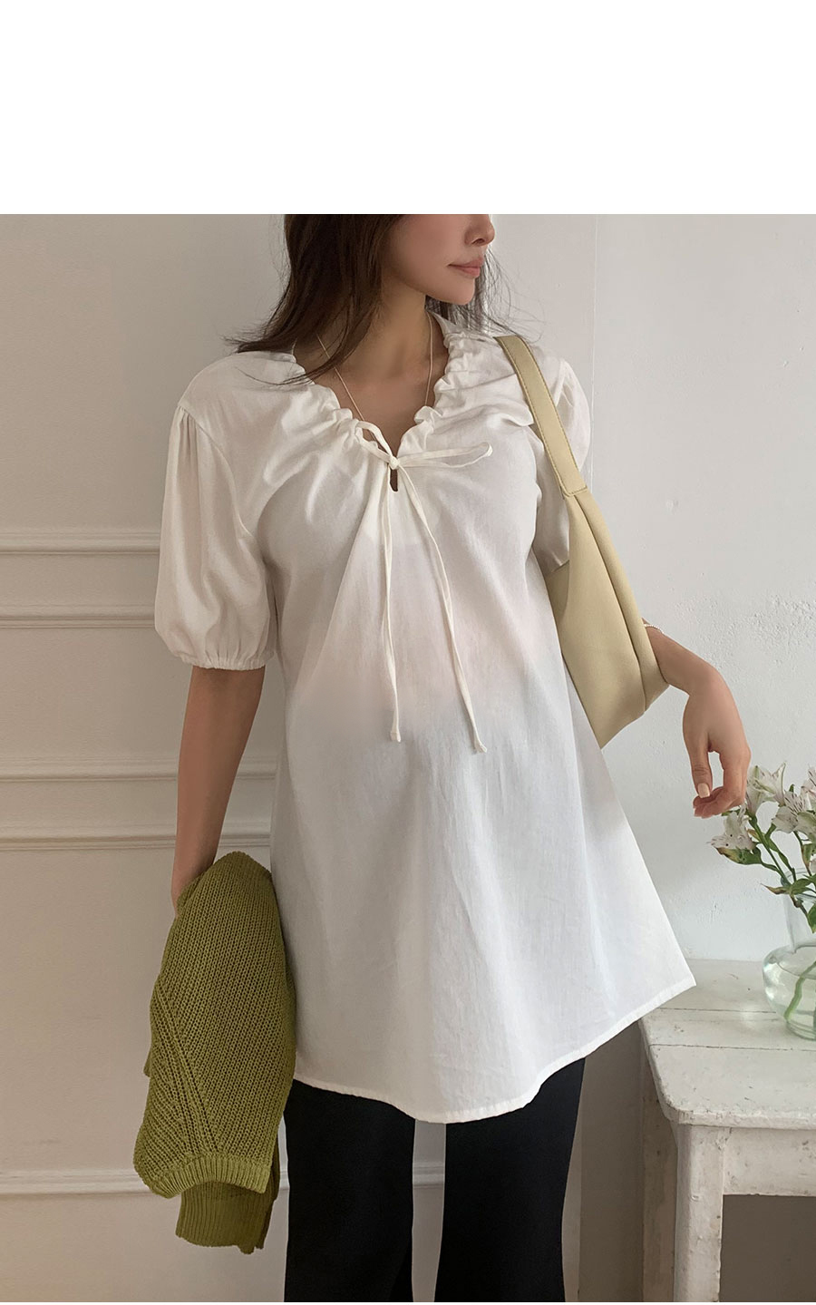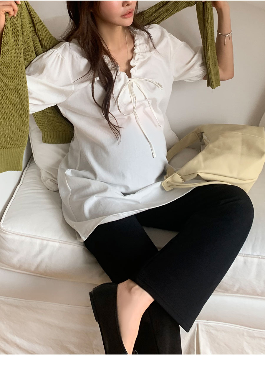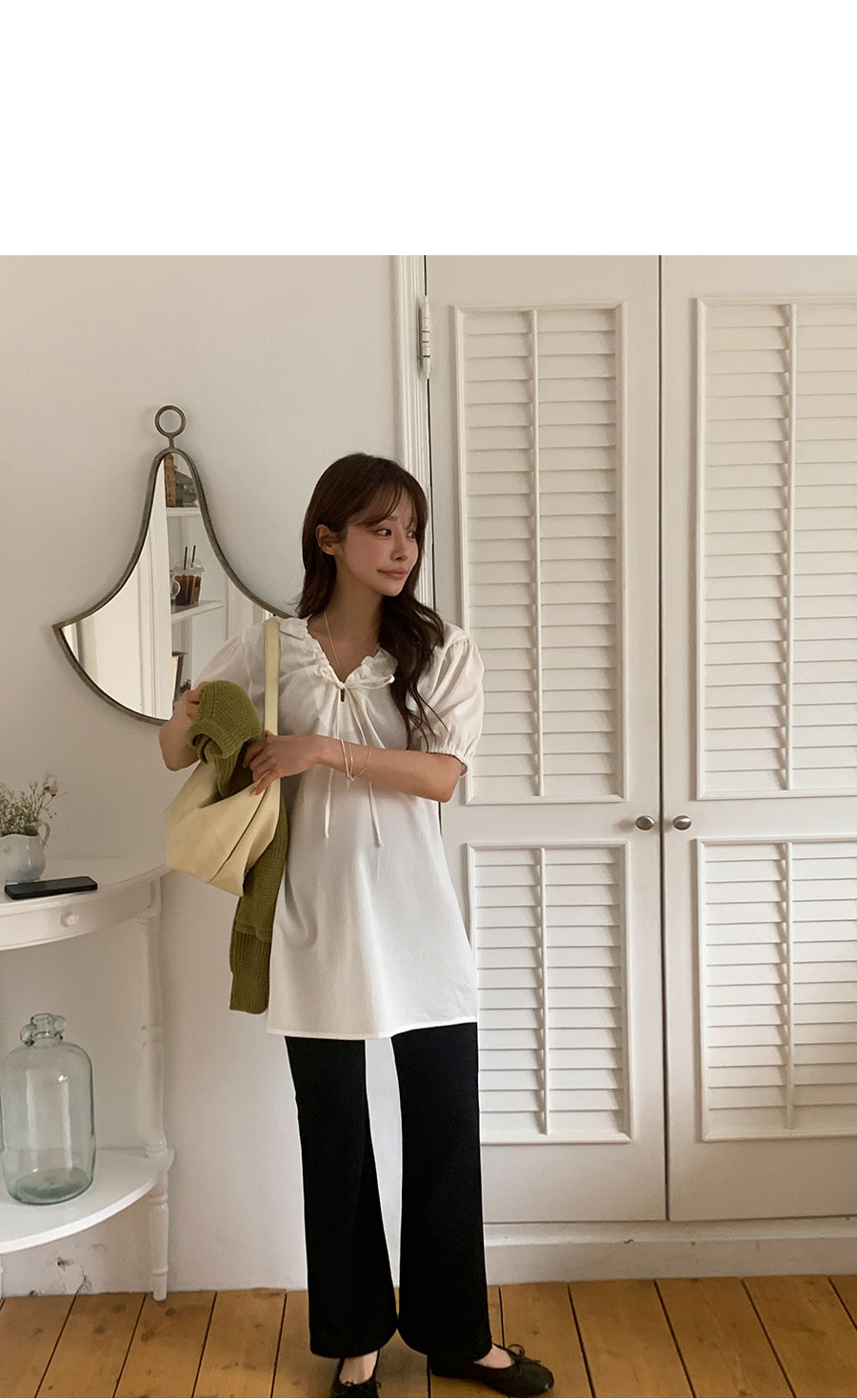 -짧다고 느껴지신다면 블라우스로 코디해주세요!