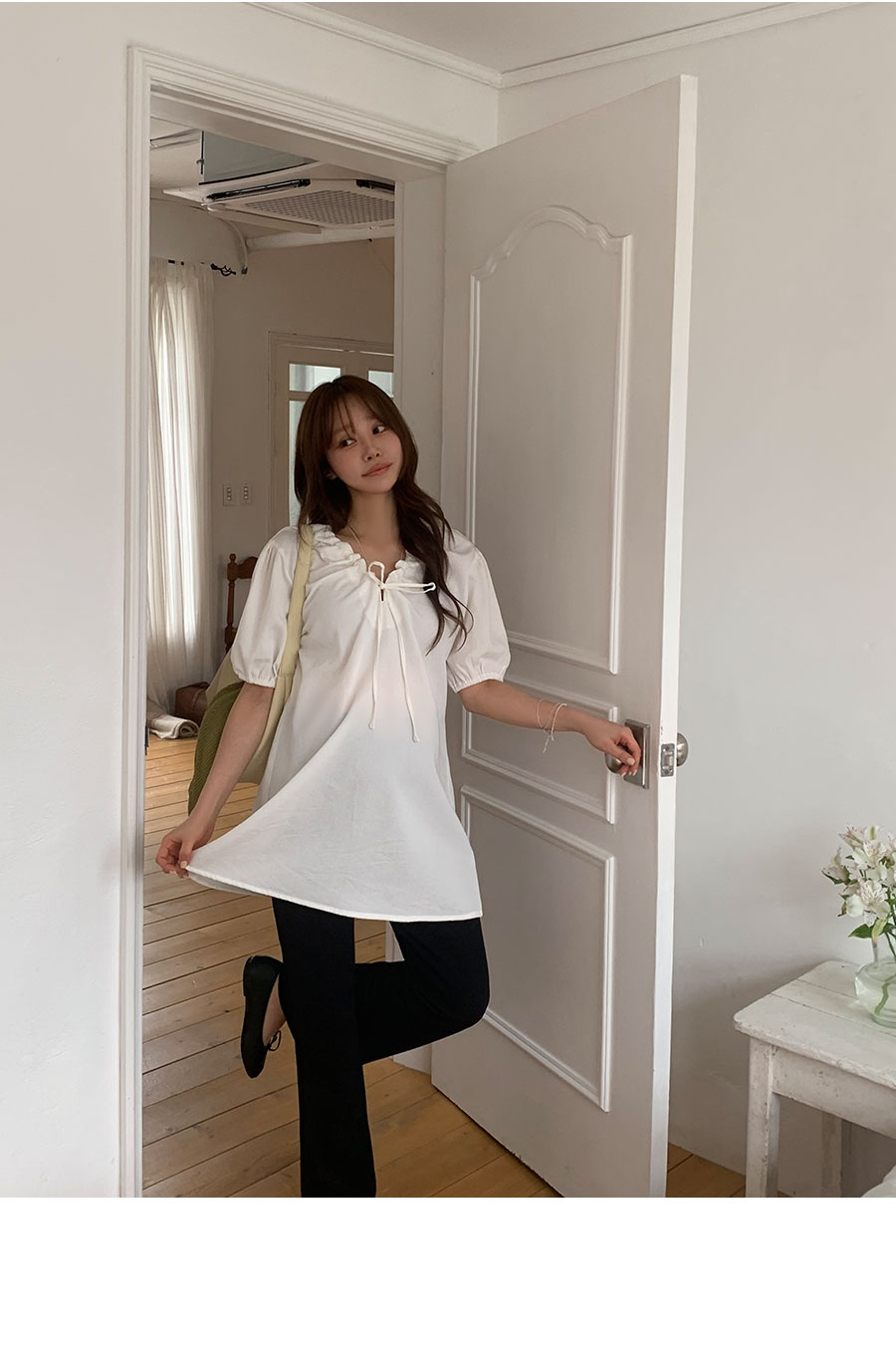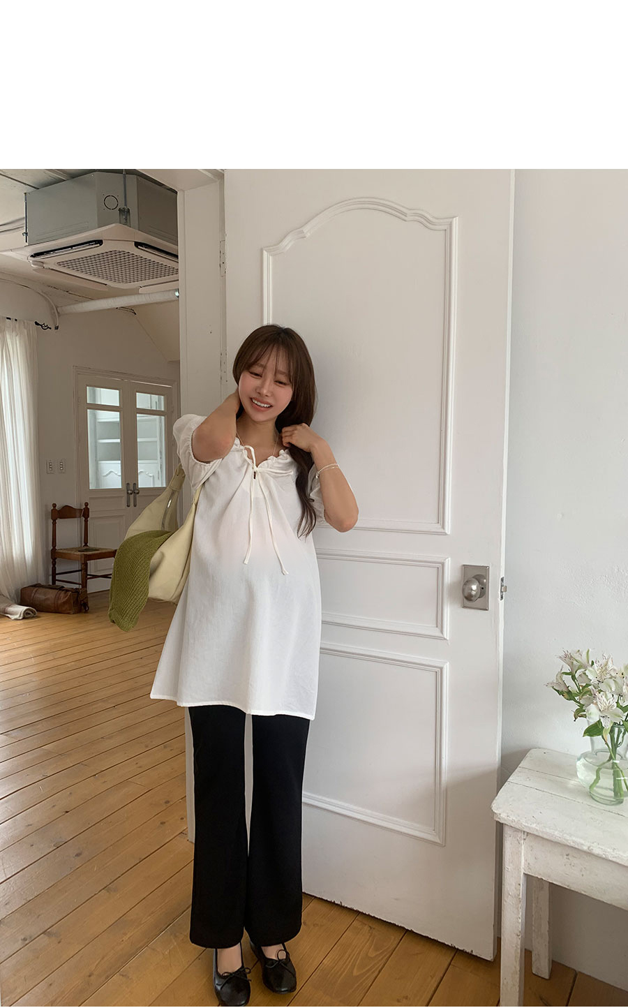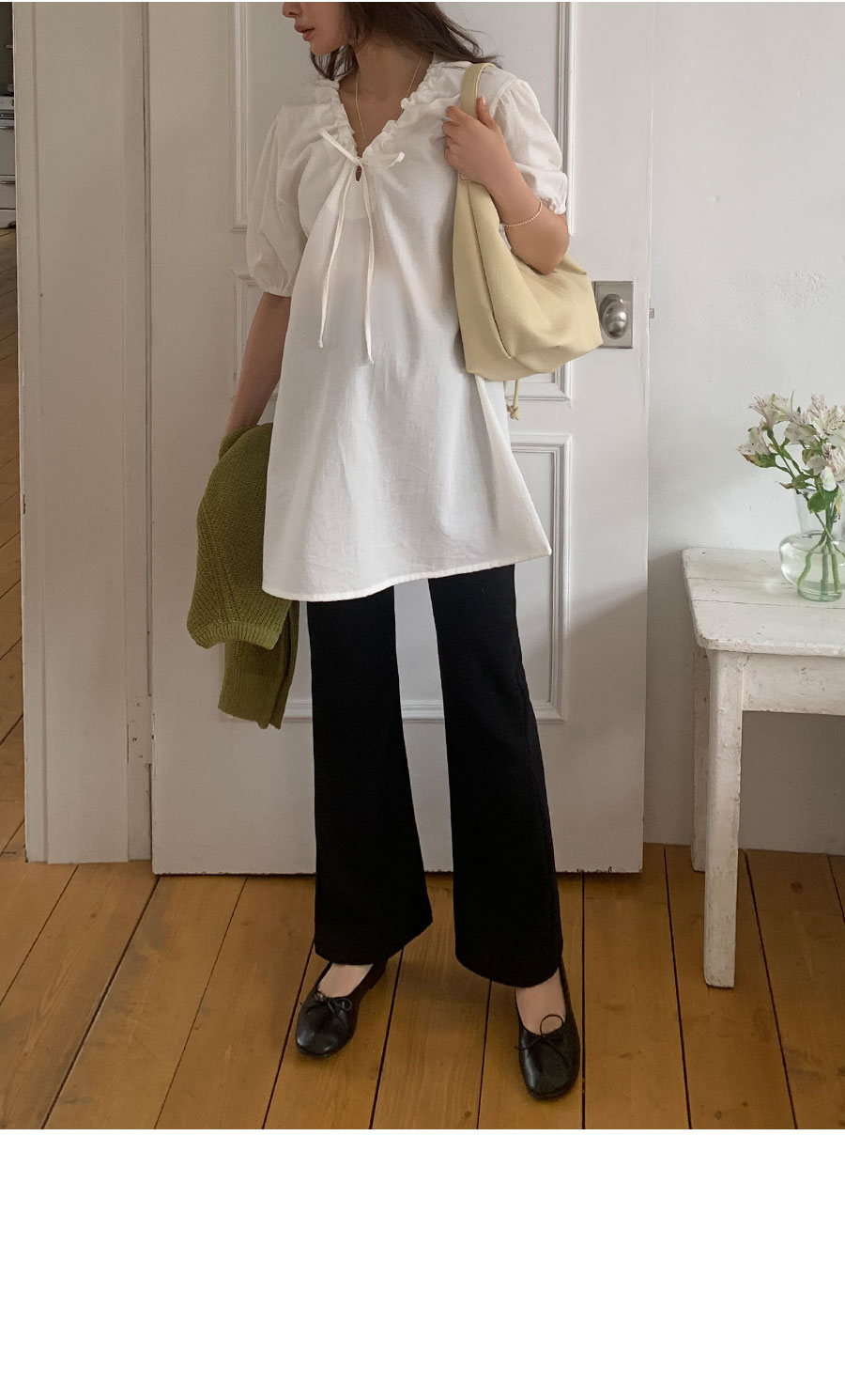 -짧다고 느껴지신다면 블라우스로 코디해주세요!