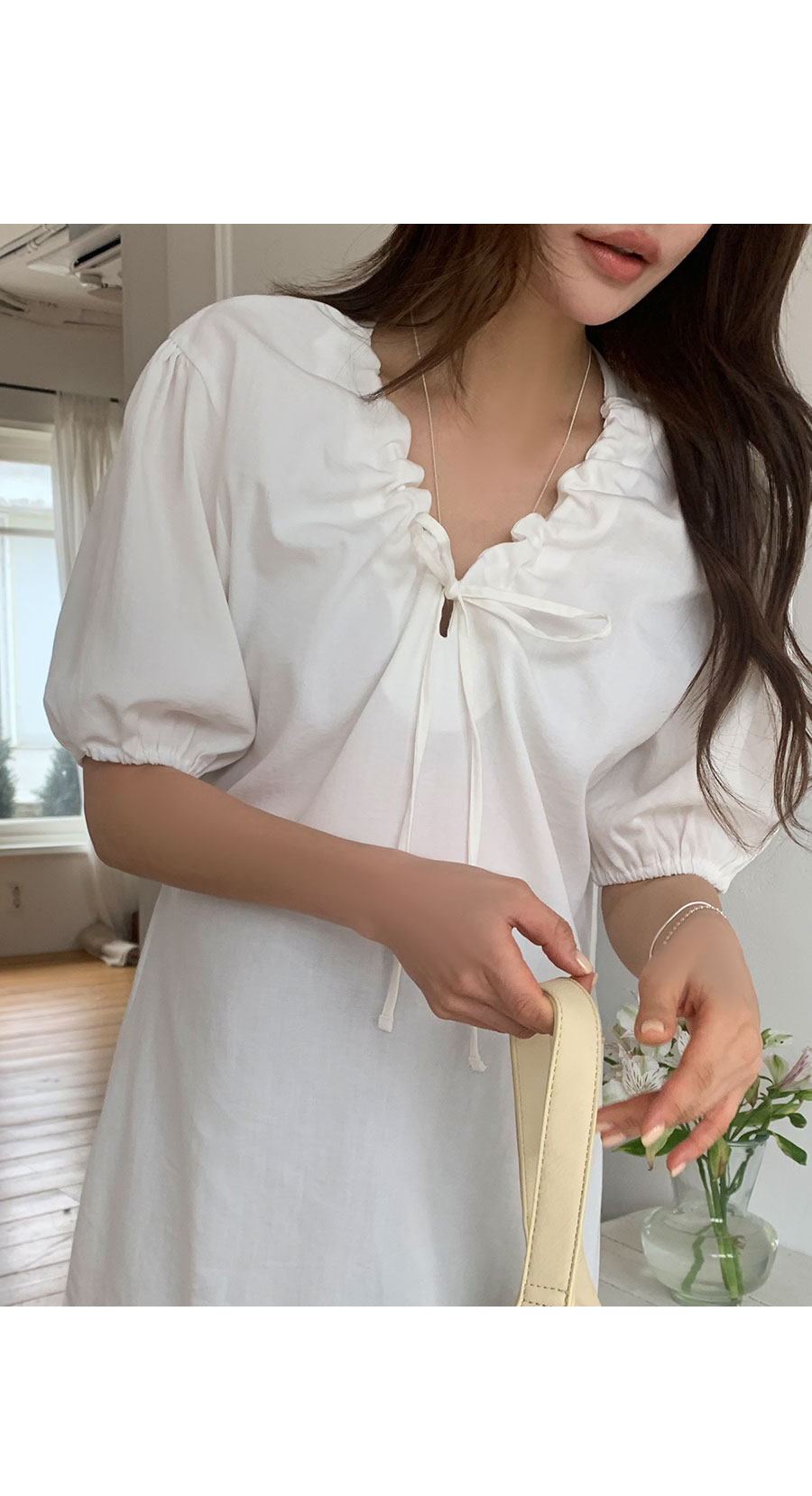 -넥라인 스트랩 디테일로 사랑스러운 무드가 가득한 원피스