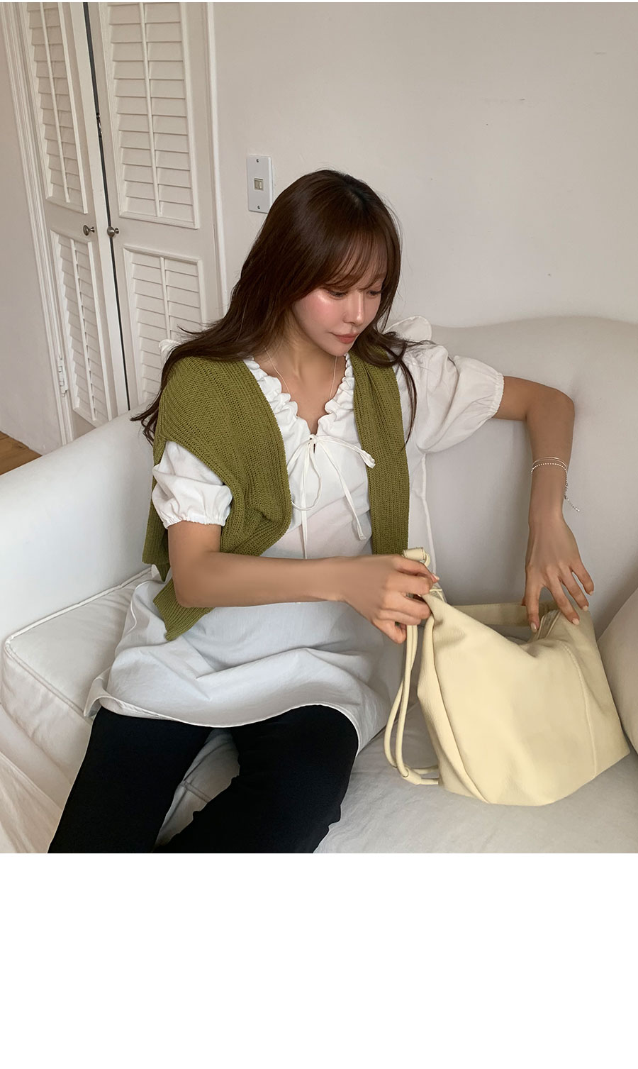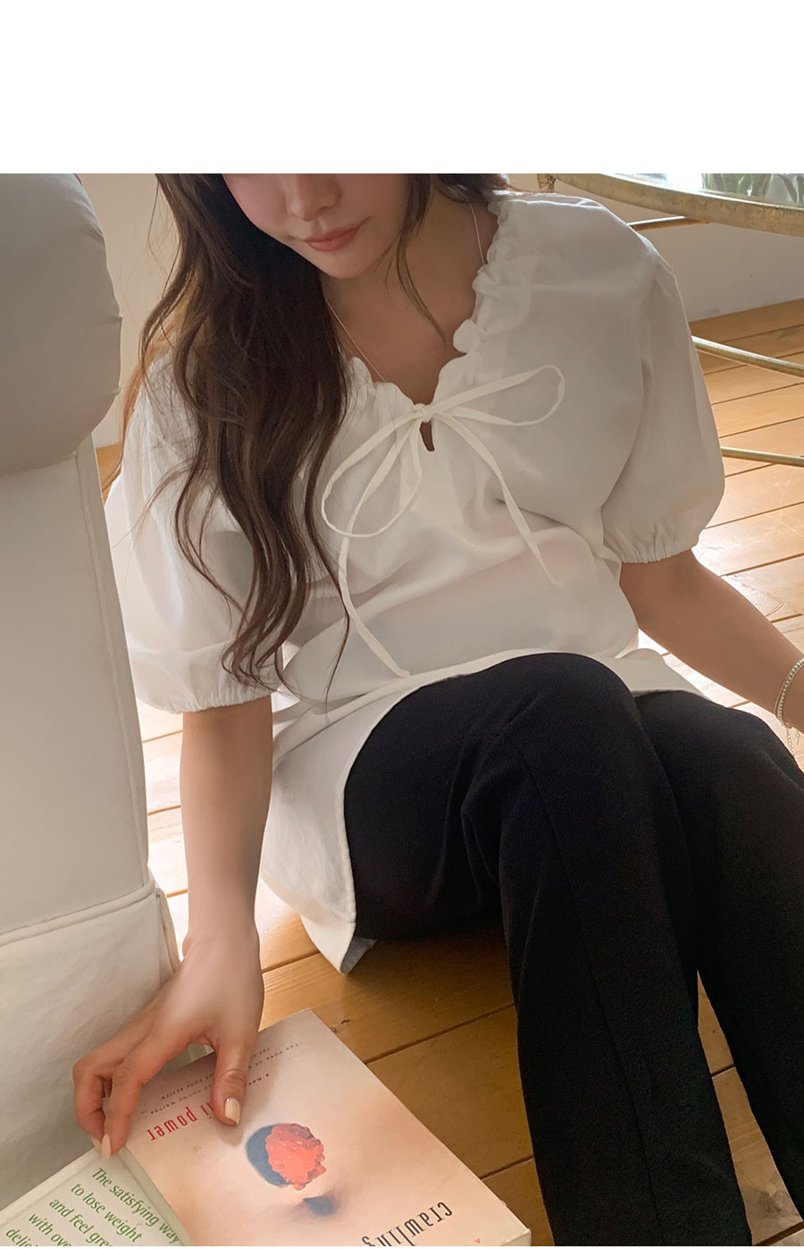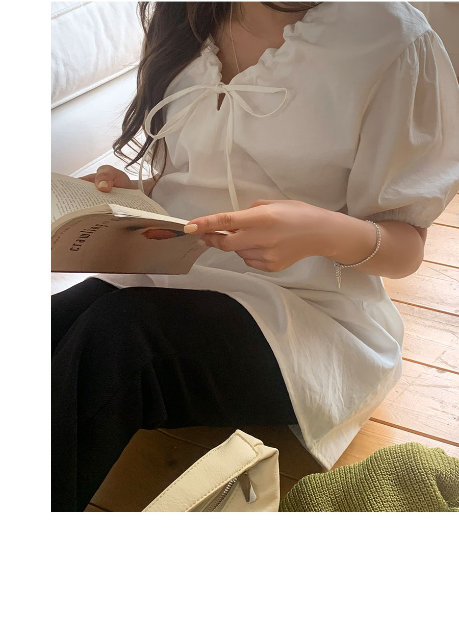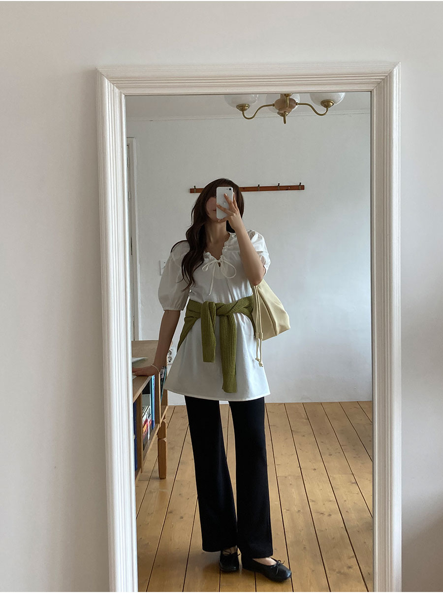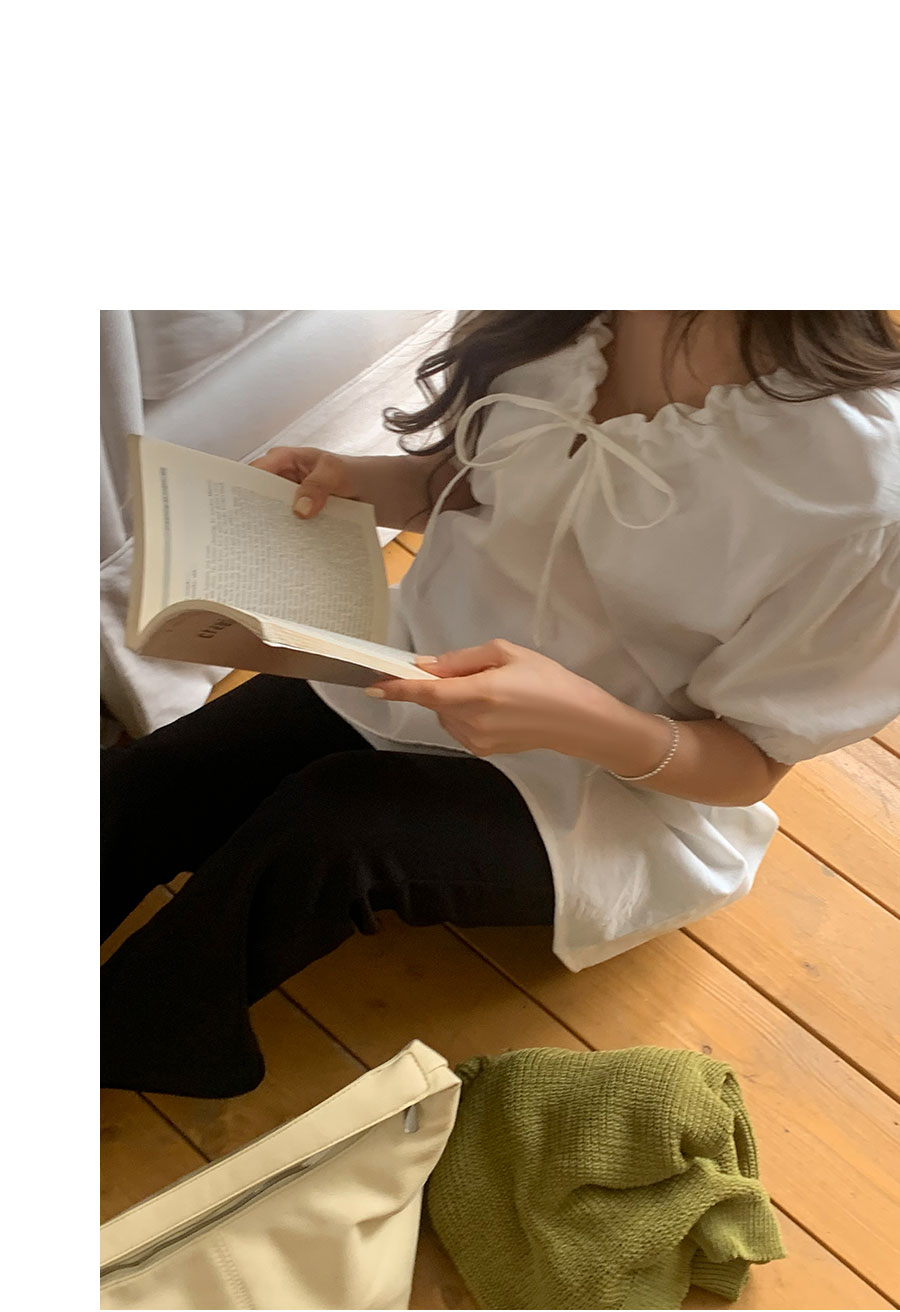 [신상] 하니스트랩 퍼프 블라우스