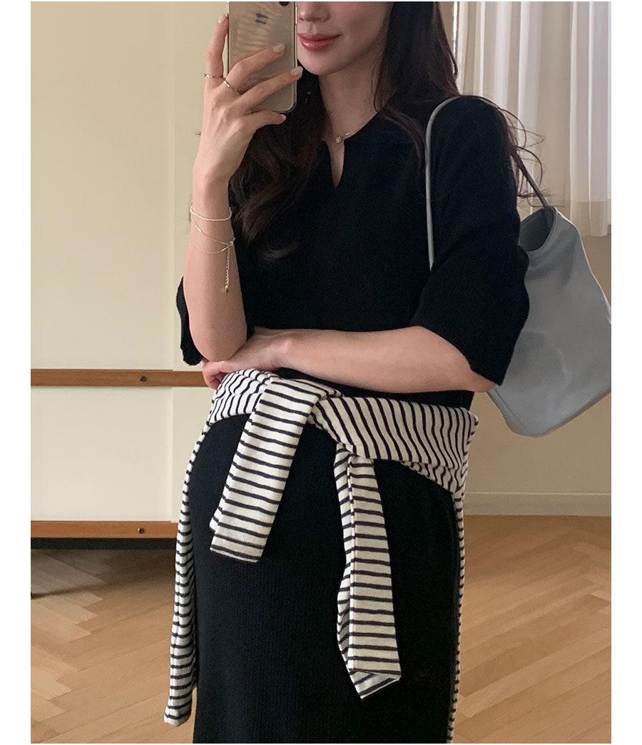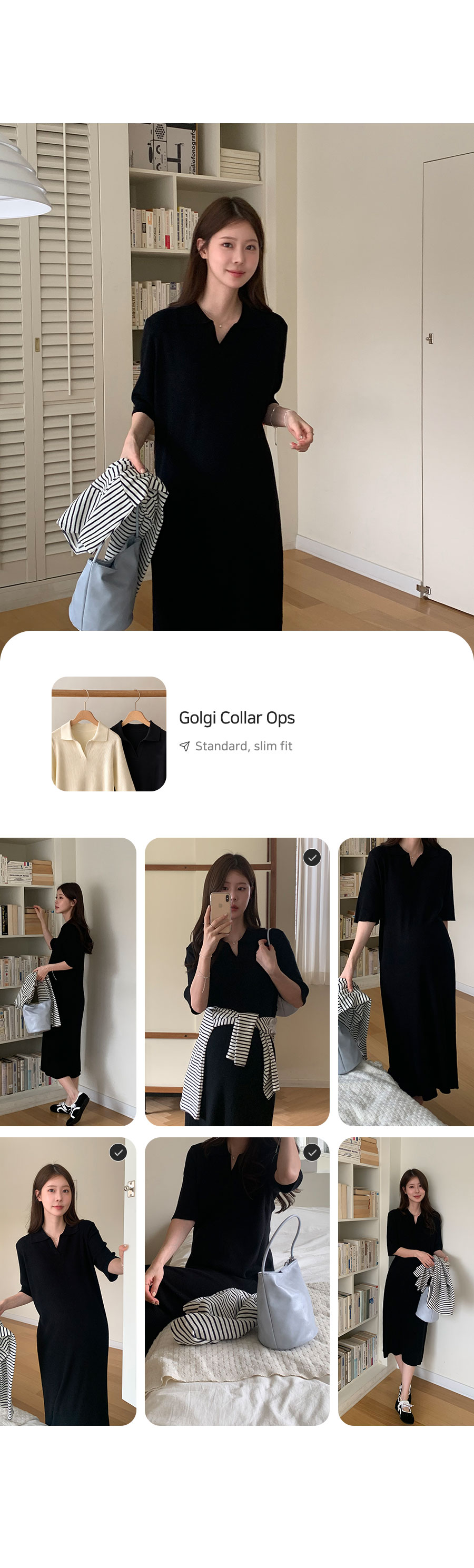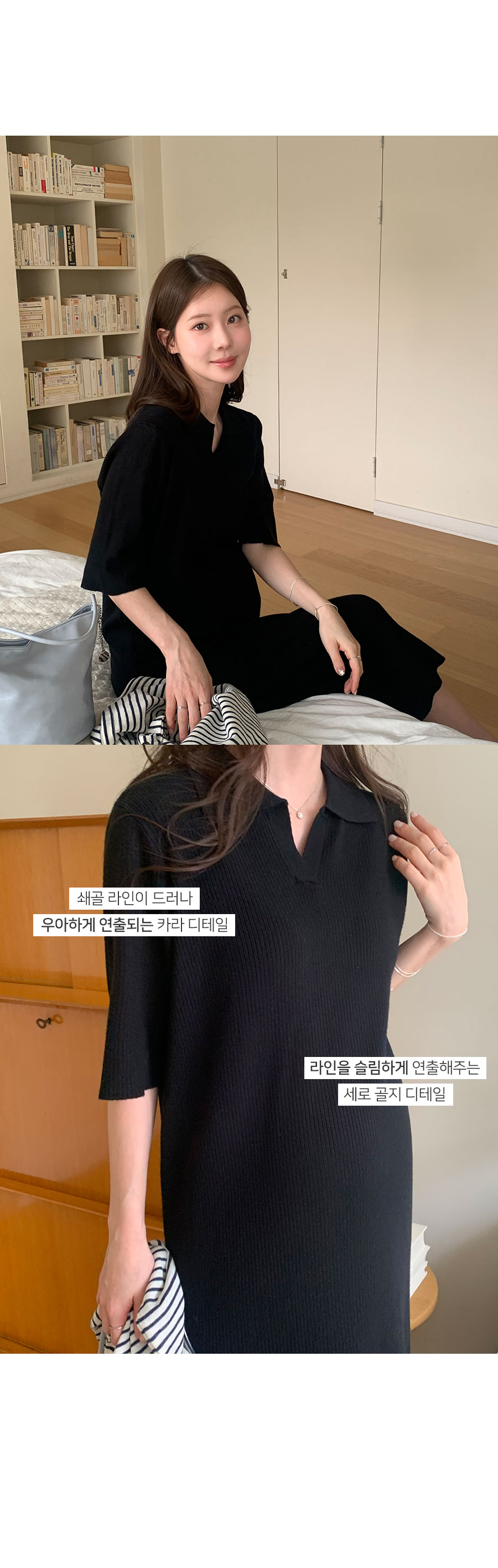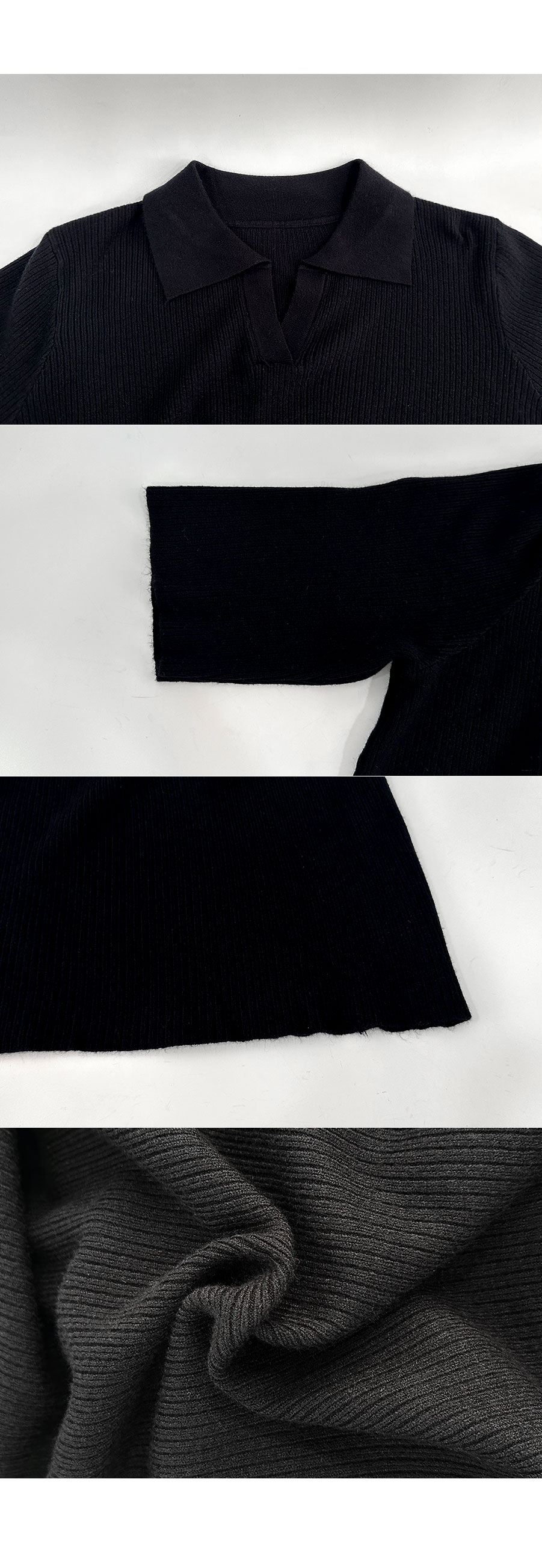 카라 디자인이 밋밋함을 덜어주며 세로골지가 바디를 슬림하게 만들어주면서 신축성이 매우 좋아 답답함이 편안하게 입어요