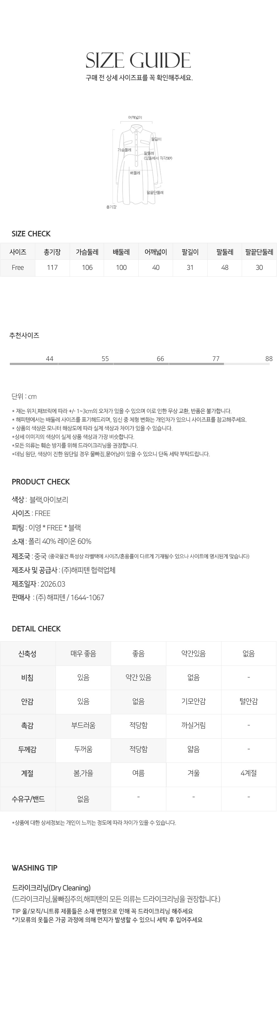 상세페이지의 세탁법을 준수하지 않아 생기는 문제에 대해서는 해피텐이 책임지지 않습니다.