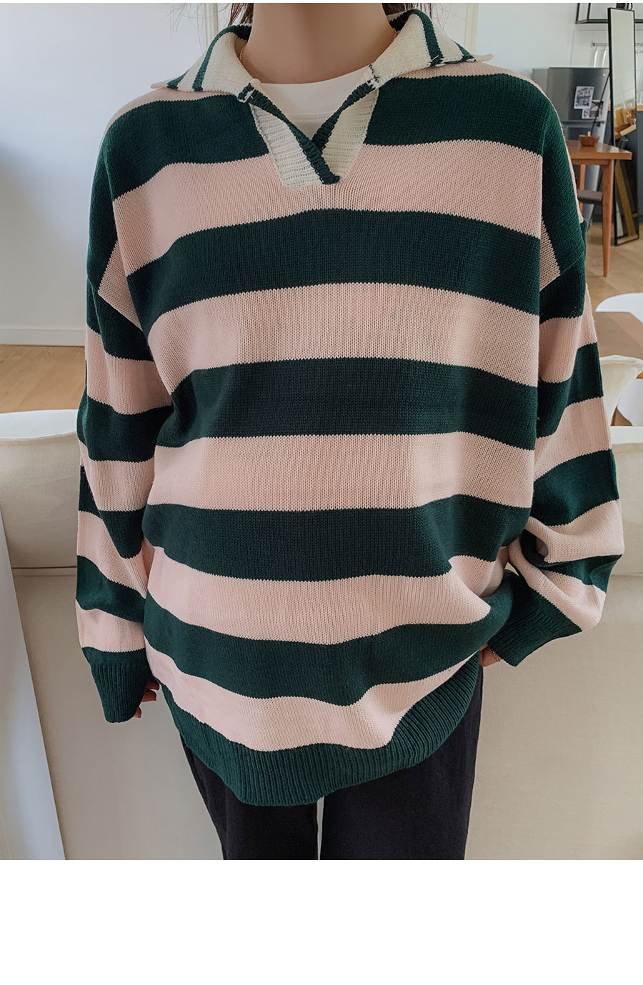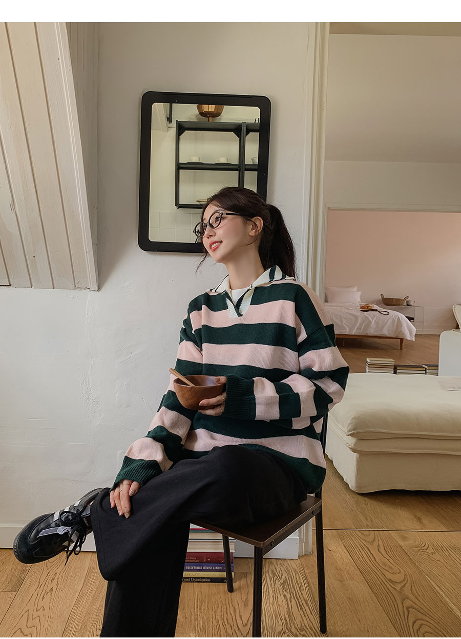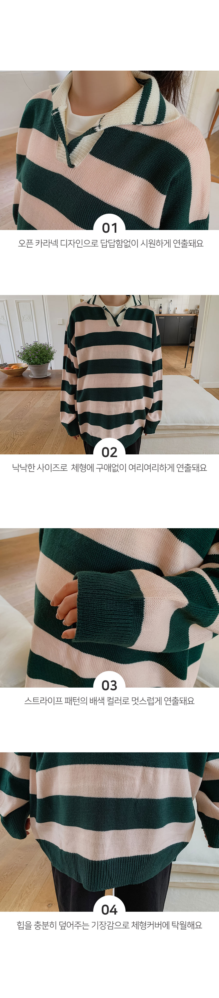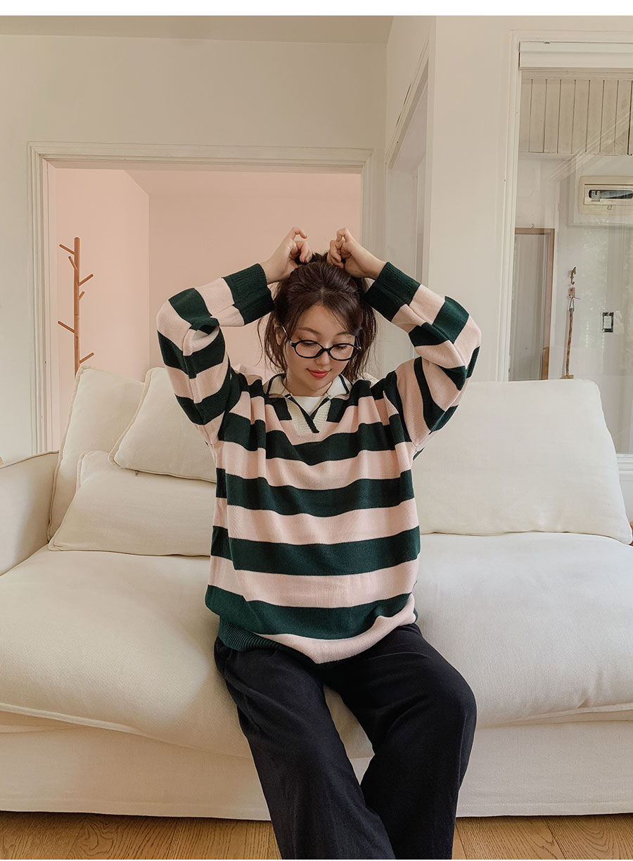 - 적당한 간격의 스트라이프 패턴과 유니크한 배색 컬러감이 매력적이라 단독으로도 충분히 스타일리시하답니다