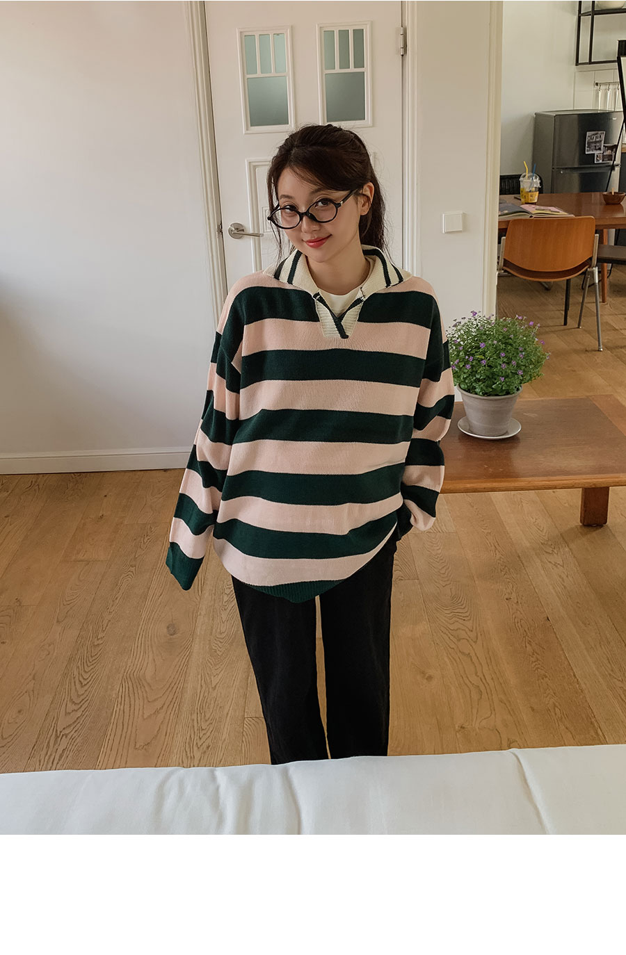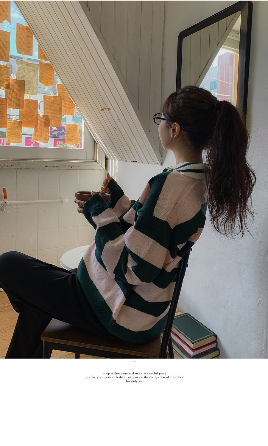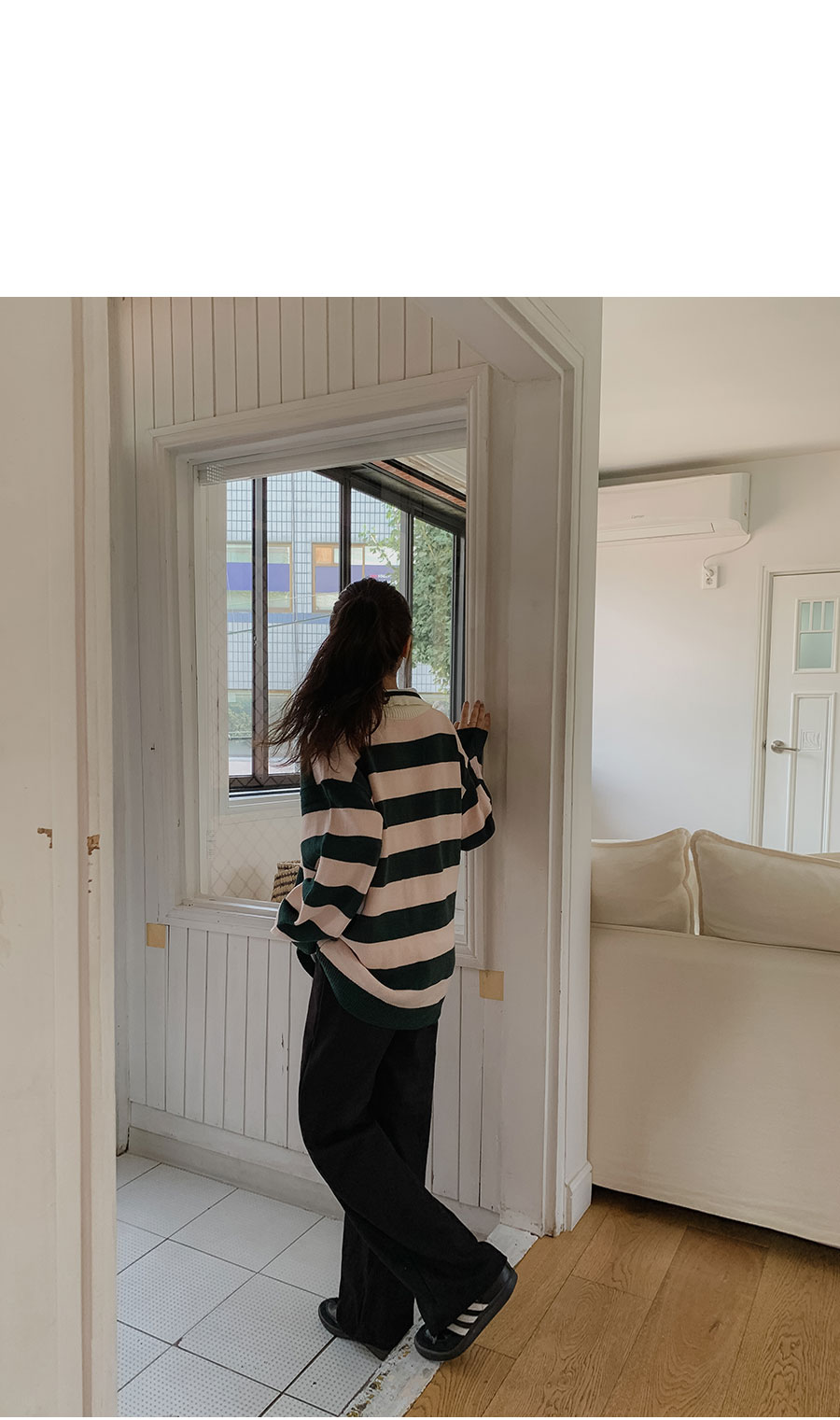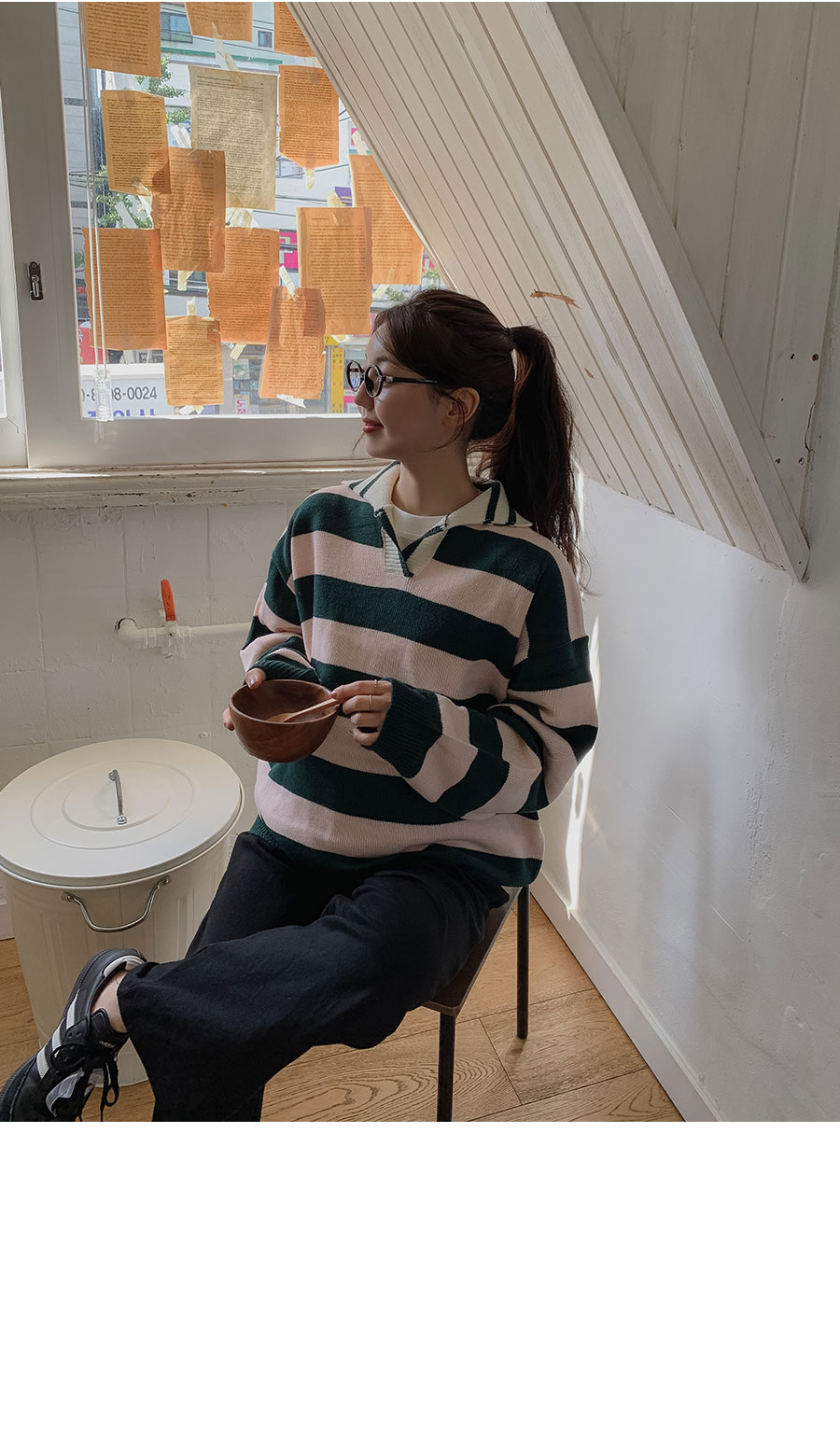 - 적당한 간격의 스트라이프 패턴과 유니크한 배색 컬러감이 매력적이라 단독으로도 충분히 스타일리시하답니다