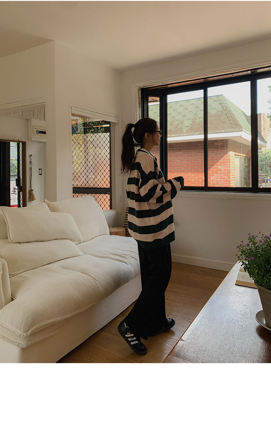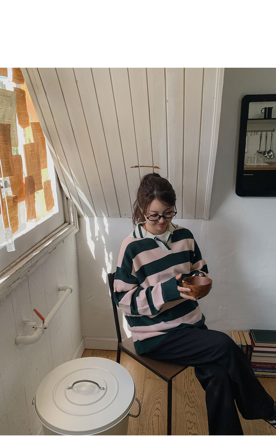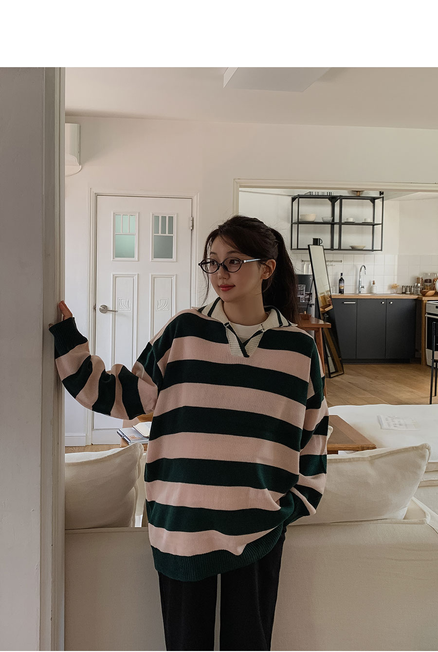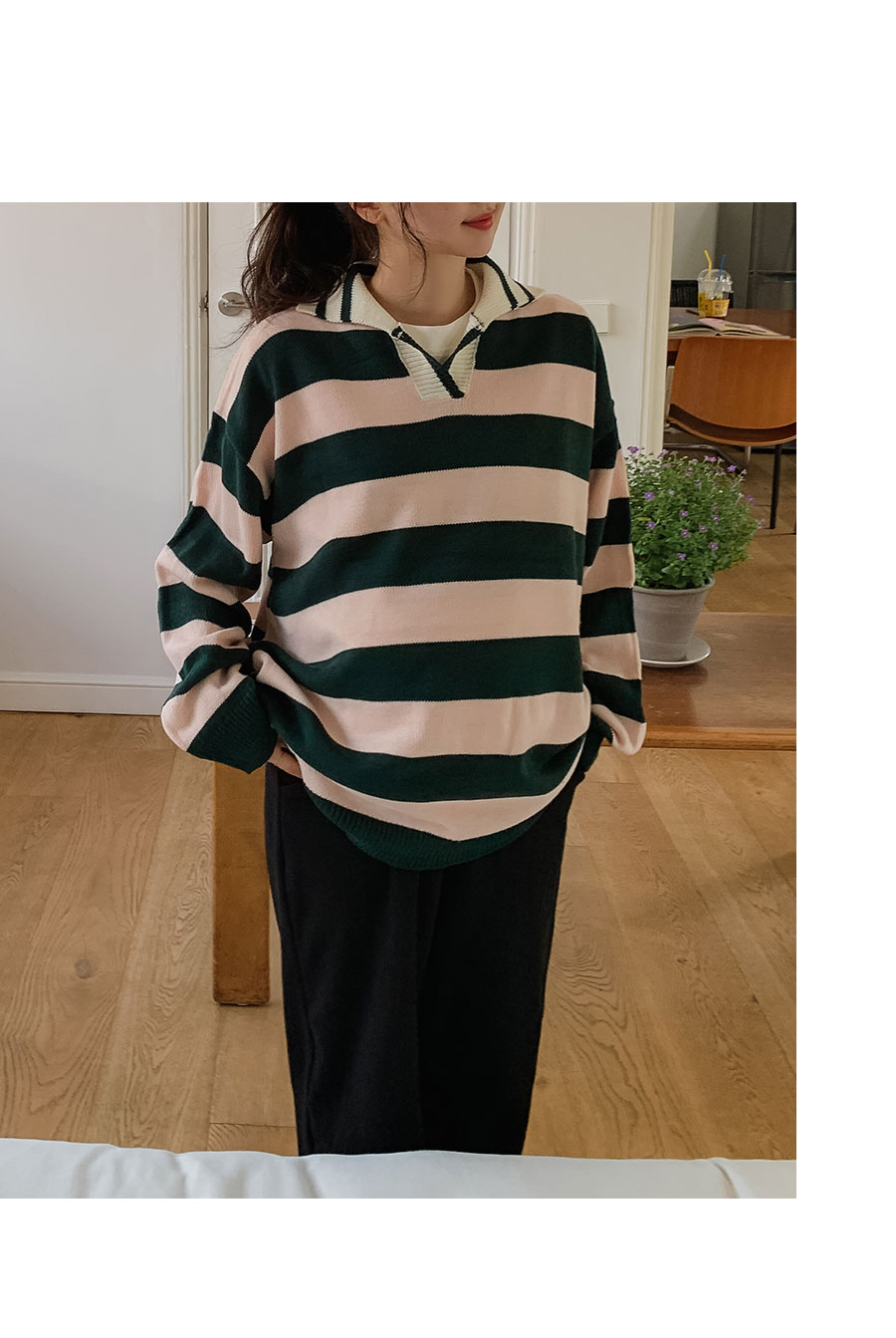 - 적당한 간격의 스트라이프 패턴과 유니크한 배색 컬러감이 매력적이라 단독으로도 충분히 스타일리시하답니다