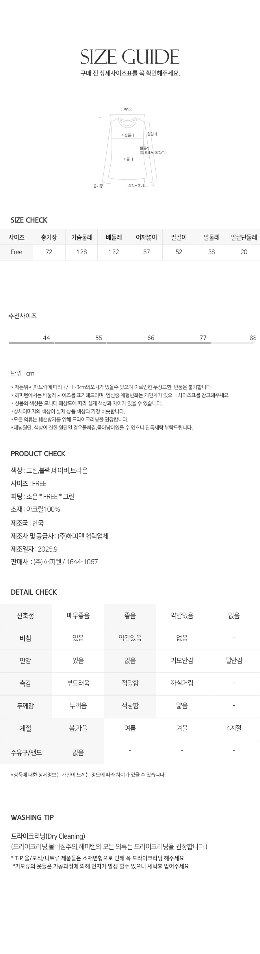 상세페이지의 세탁법을 준수하지 않아 생기는 문제에 대해서는 해피텐이 책임지지 않습니다.