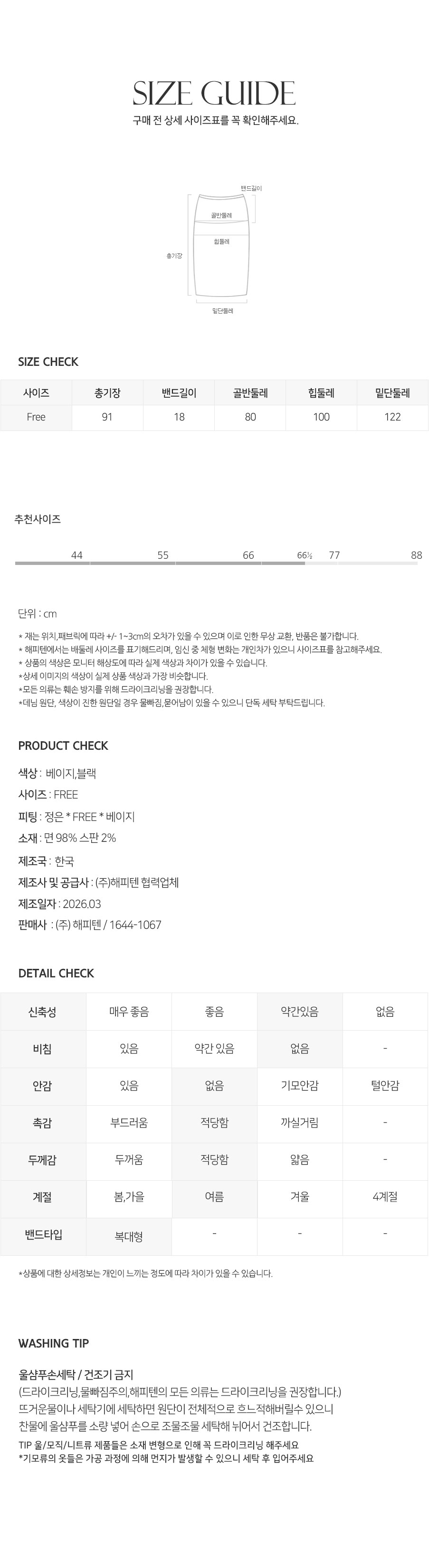 • 상세페이지의 세탁법을 준수하지 않아 생기는 문제에 대해서는 해피텐이 책임지지 않습니다.