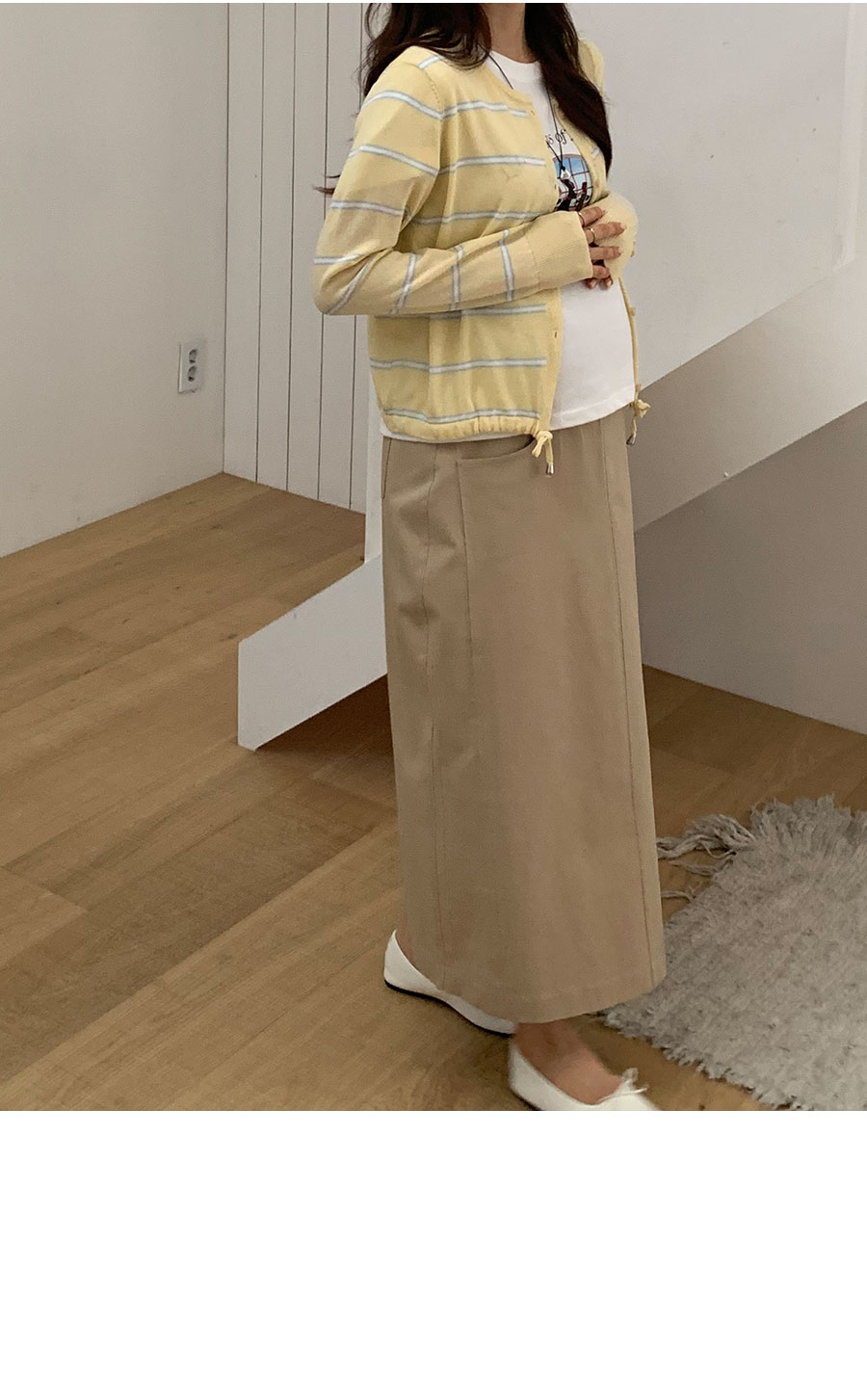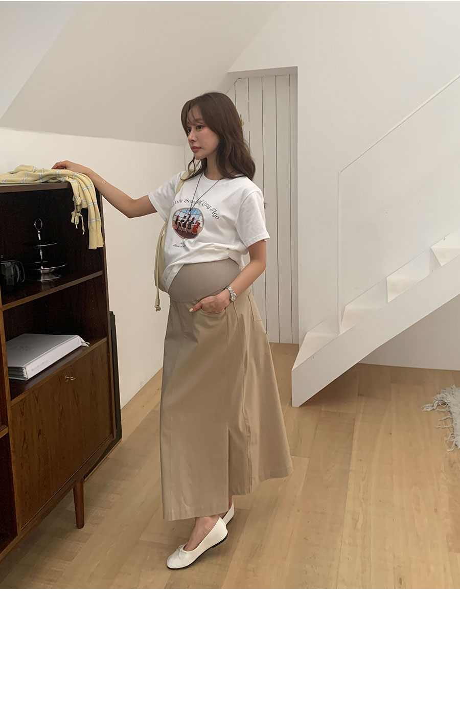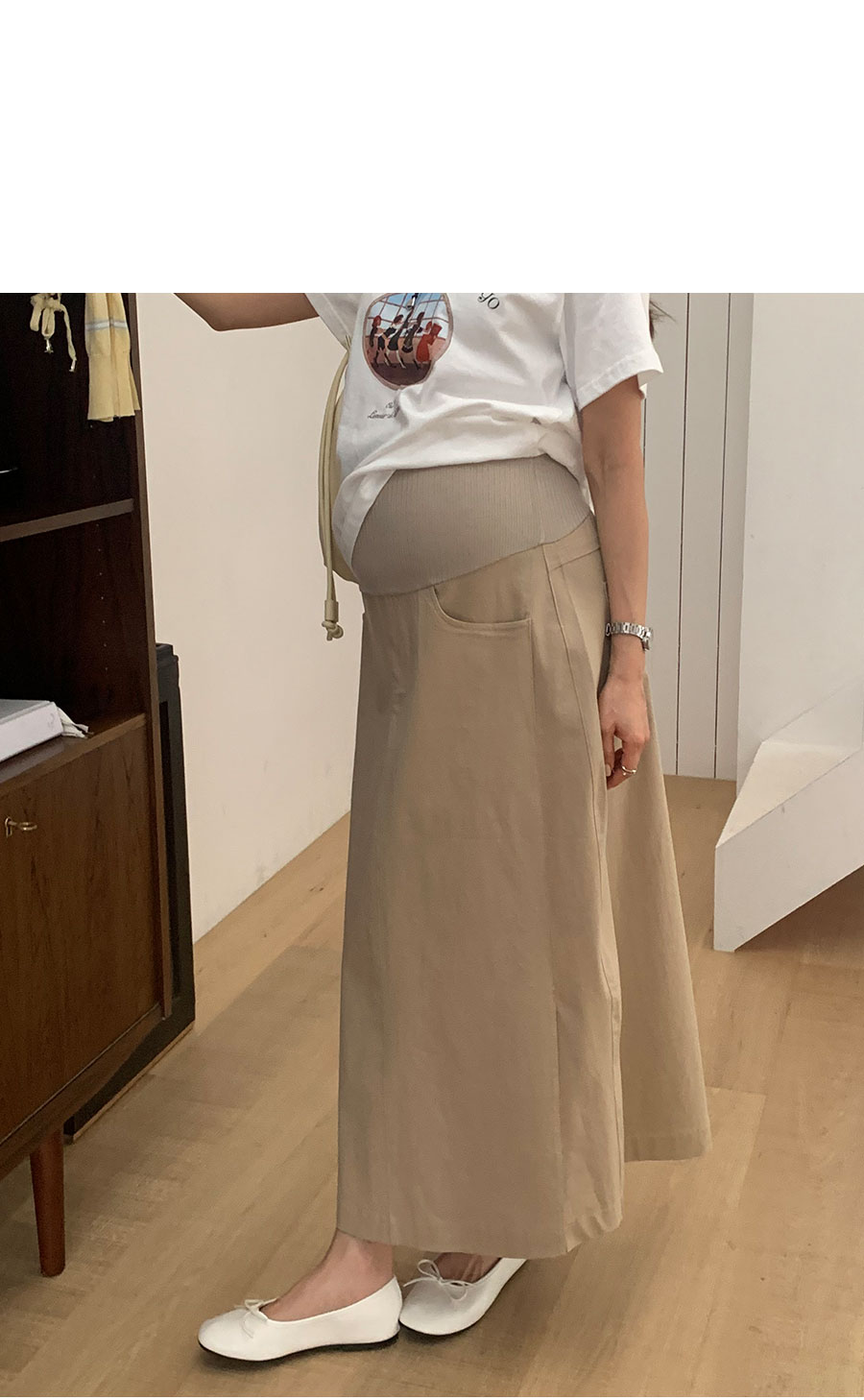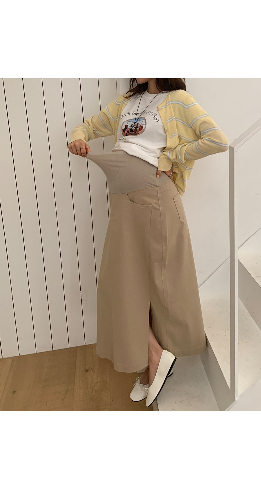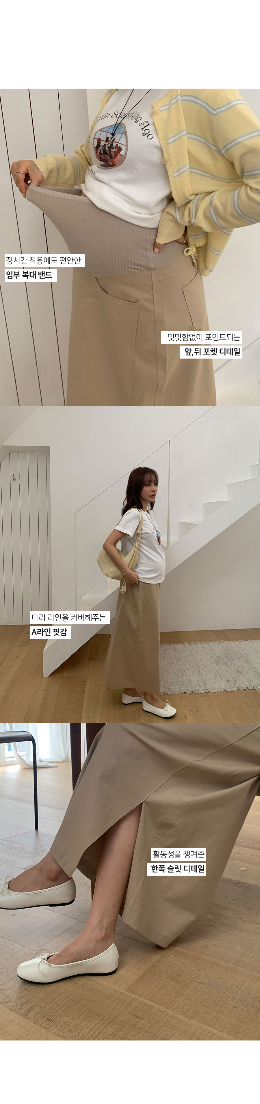 (만삭까지/배전체커버/체형커버/임산부,만삭OK) 군더더기 없는 깔끔한 핏감과 모던한 디자인과 탄탄한 코튼 소재와 신축성을 더해주는 스판 혼방소재로 내구성이 좋아 오랫동안 입을 수 있어요